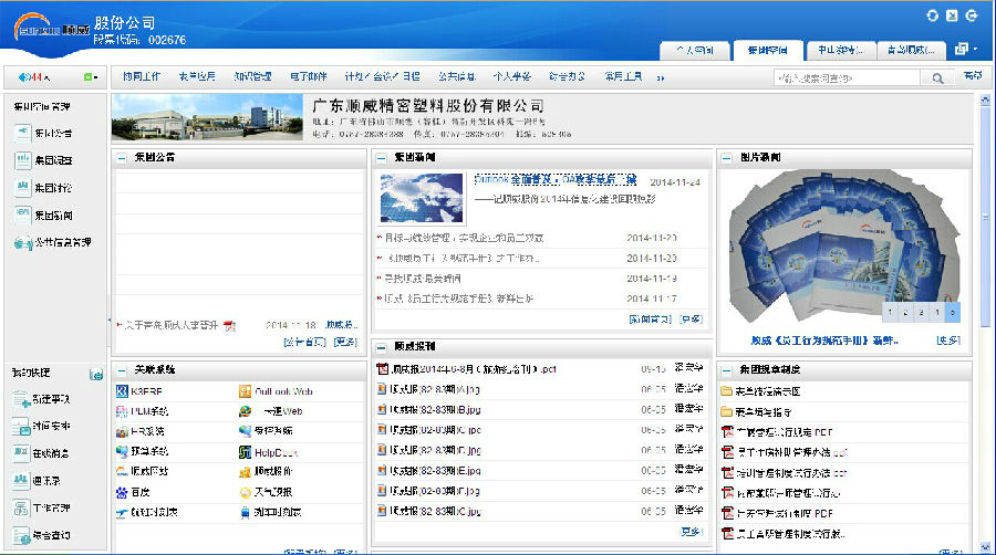 3、2014年11月,順威股份旗下分子公司OA協(xié)同系統(tǒng)實現(xiàn)全面上線,蕪湖順威精密塑料有限公司——這最后一座城池計日即可攻破。協(xié)同系統(tǒng)涵蓋人力、行政、財務、基建、供應鏈管理等7大職能。系統(tǒng)上的30多份固定表單相當于30多個制度,有了統(tǒng)一表單格式,旨在力推無紙化辦公。而公司領導手機里安裝的系統(tǒng)軟件,則可以打破時空界限,溝通零距離無障礙,實現(xiàn)移動辦公。