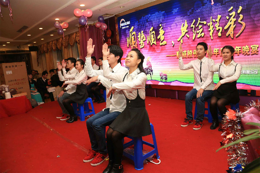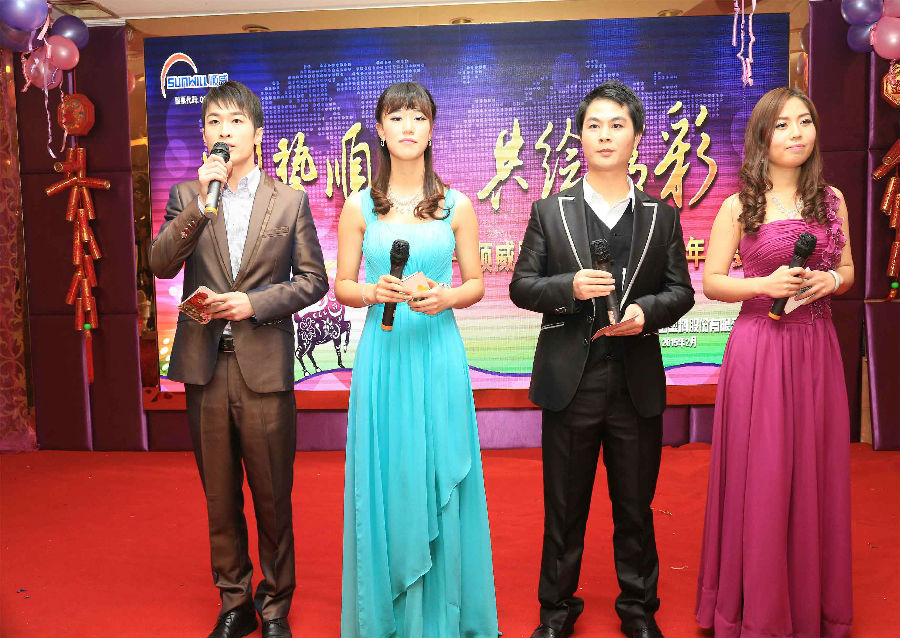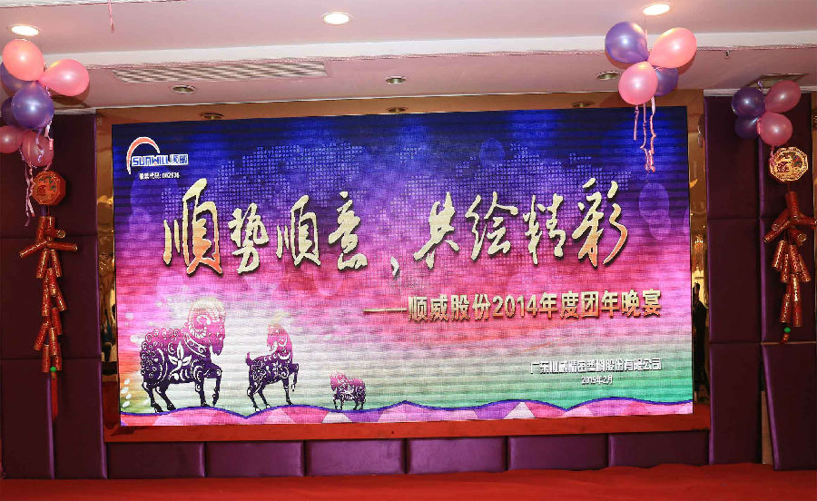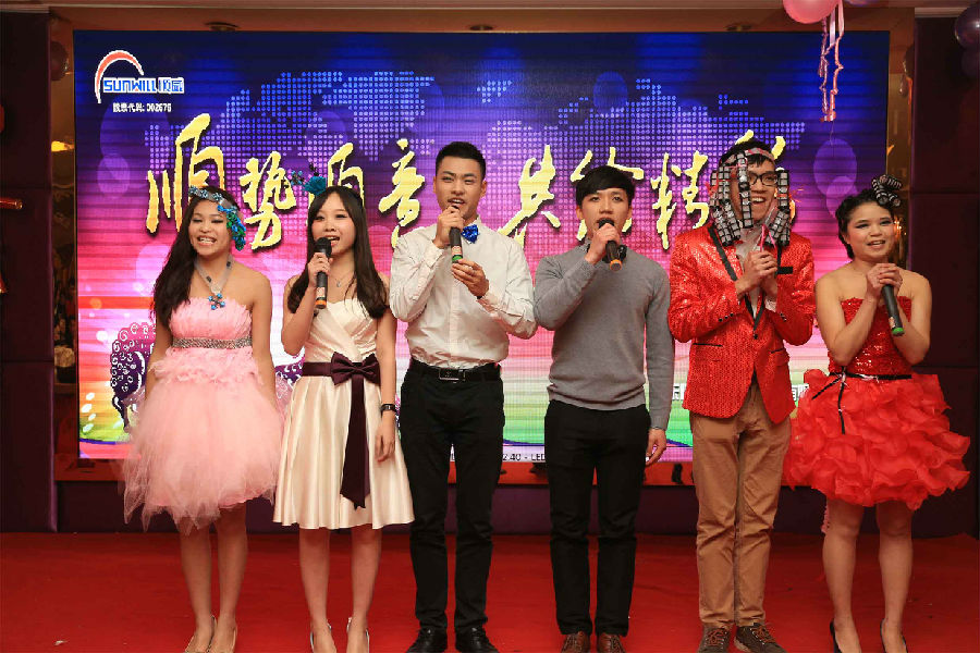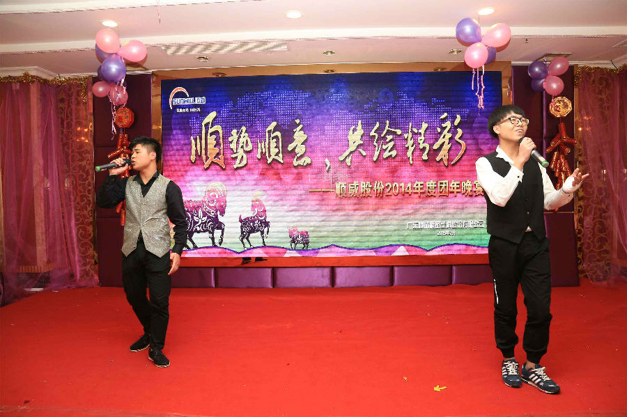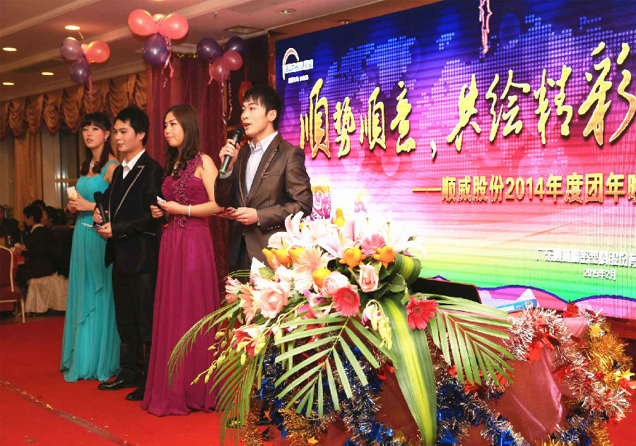 順勢順威,共繪精彩。作為公司年底的重大文化盛事,順威股份廣東區域2014年團年晚宴于2015年2月8日晚在容桂源興酒家圓滿落下帷幕。精心的晚會流程安排、演員們用心的表演、主持人默契的配合、節目的創新突破,使得整場晚會亮點紛呈,掀起了一輪又一輪的高潮。而順威股份董事長麥仁釗先生,順威股份董事、總裁王世孝先生等公司高層領導振奮人心的講話,更是描繪出順威股份2015年度工作的美好藍圖,明確了公司發展的方向,極大地鼓舞了公司員工斗志,給人以無窮的信心和希望。