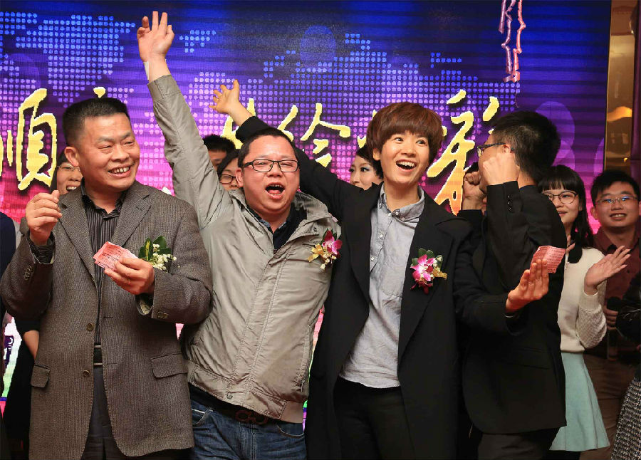 晚宴最后一個懸念揭曉:順德塑料分公司駱志輝喜中特等獎,現金5000元直接領回家
