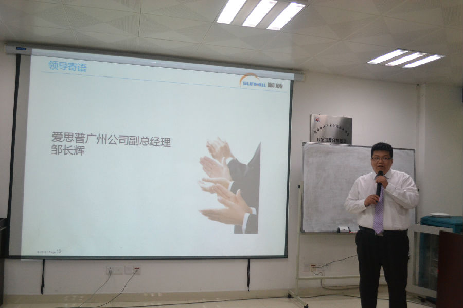 接著,愛思普廣州公司副總經理鄒長輝先生為順威SAP項目講話。他強調愛思普項目團隊將會與順威項目組通力合作,盡最大的努力,保質保量地讓順威的SAP系統如期上線。隨后,順威SAP項目經理歐陽植任先生進行項目推行管理方面的內容講解,說明了項目小組的組織架構、目前公司信息化現狀及SAP上線后的管理方向等。而后由愛思普公司項目經理況海斌先生詳細講解順威SAP項目內容。他從項目成功因素、實施方法、實施計劃及知識轉移四個方面對順威SAP項目工作進行了詳盡的闡述。項目介紹完畢后,順威SAP項目模塊組組長代表王貞玉女士及關鍵用戶代表陳偉忠先生進行發言。